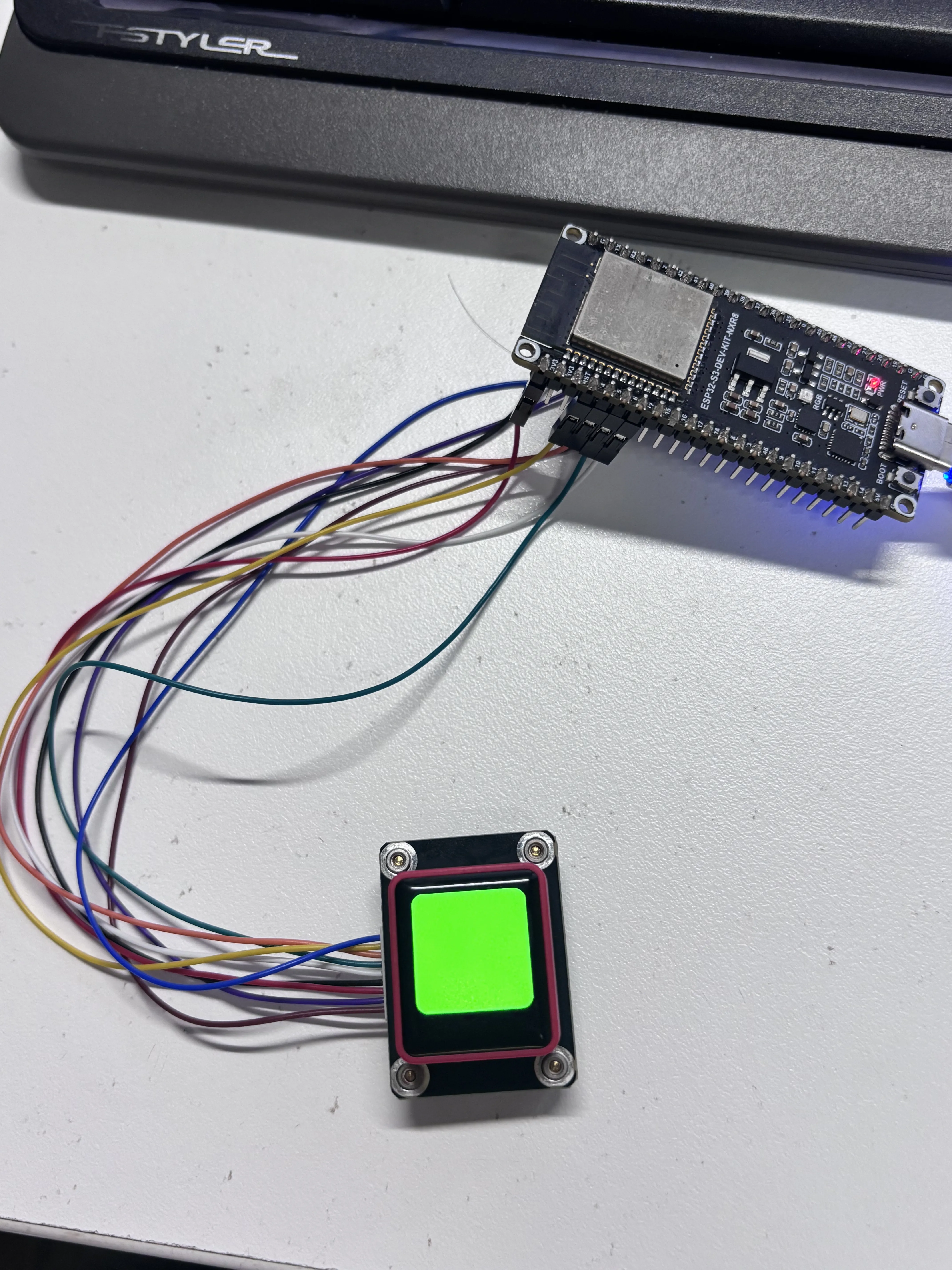 - This example demonstrates how to drive the 0.85inch ScreenKey Module with an ESP32‑S3 development board, implementing image switching on button press.