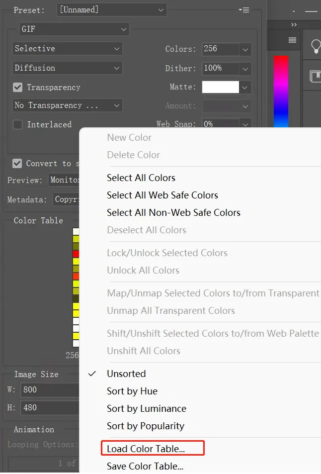 - Select Load Color Table as shown below. Load the Color Table provided in the Preparation section.