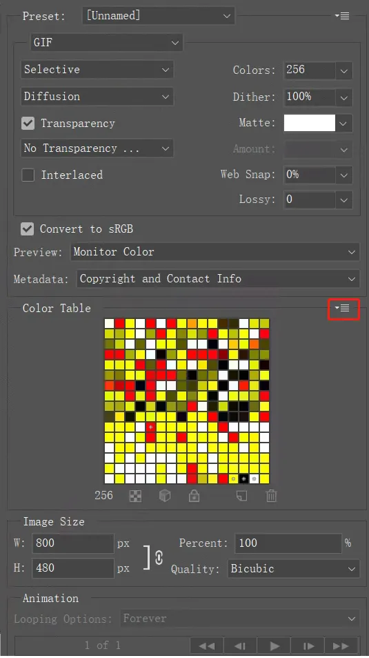 - For seven-color pictures, load N-color.act, then click Save to save as a gif file. It is then converted to BMP format for use on this module.