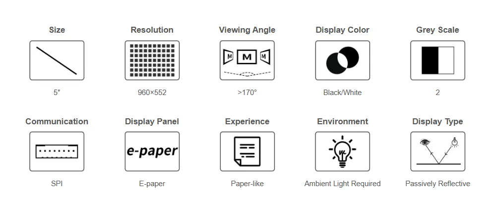 - When using the e-Paper, it is recommended to set a refresh interval of at least 180 seconds and perform a refresh at least once every 24 hours. If the e-Paper will not be used for a long time, store it with a white image displayed. (Refer to the datasheet for specific storage environment requirements.)