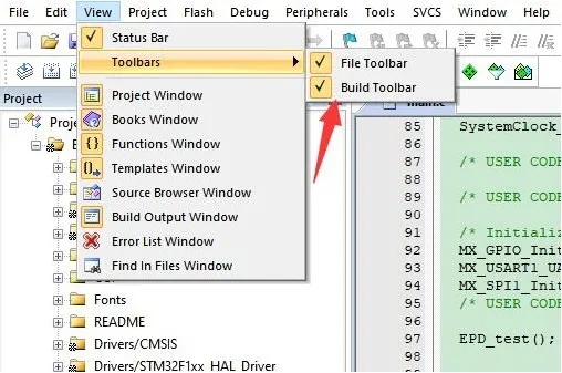 - Open the Keil compile toolbar (usually already open):