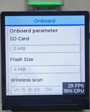 - LCD Display: After the device powers on, the LCD lights up automatically, showing the UI interface drawn by LVGL with a stable refresh rate (typically 30-60 fps).
