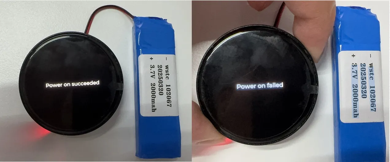 After the program is flashed, disconnect the USB power supply and connect the lithium battery. Power on by pressing and holding the PWR button, as shown in the figure: