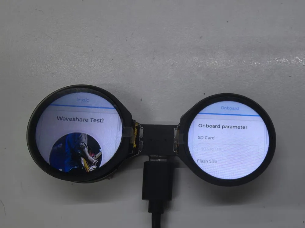 - This example demonstrates the functionality of the onboard devices. Screen 2 displays parameters such as TF Card and Flash Size, while Screen 1 is the music playback interface. Additionally, this example adds speech recognition functionality.