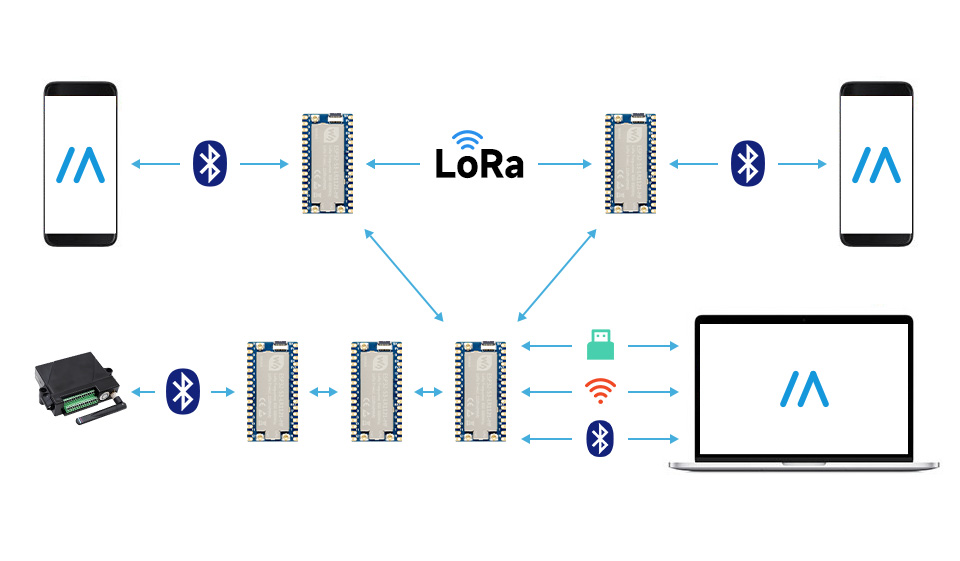 - Mesh Networking: Each node acts as both an endpoint and a repeater, automatically finding paths to extend communication range.