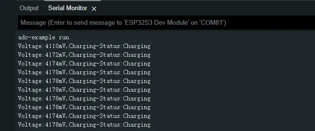 - The analog voltage connected through the GPIO is converted to digital by the ADC, and then the actual lithium battery voltage is calculated and printed to the terminal.