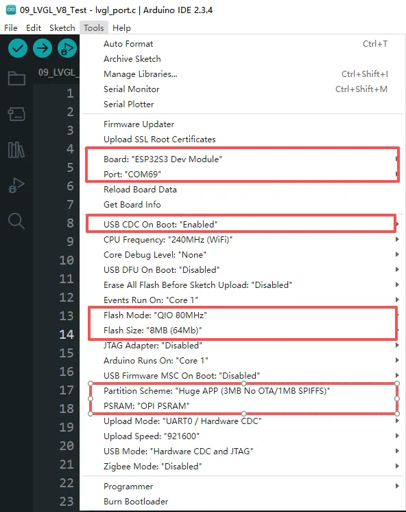 3. Arduino Project Parameter Settings