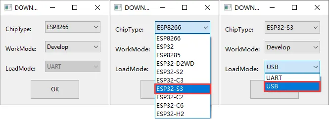 - Open the flash_download_tool_3.9.7.exe software. Select