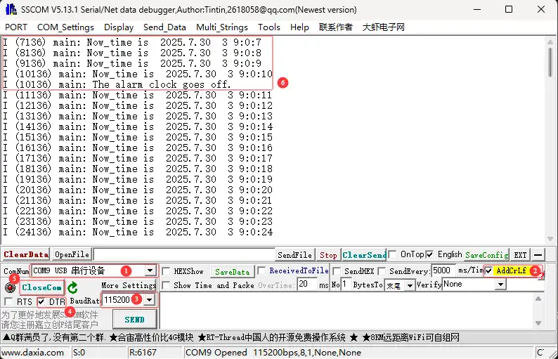 | 02_rtc | Uses the onboard RTC chip to implement real-time clock display and alarm reminder functionality | - |