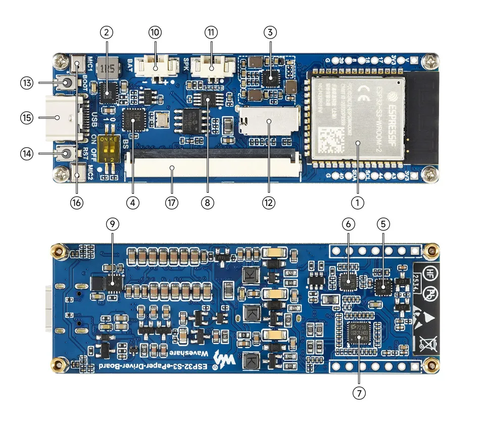- Onboard 13.3E6 e‑Paper interface, supporting direct connection to the 13.3E6 full‑color e‑Paper screen