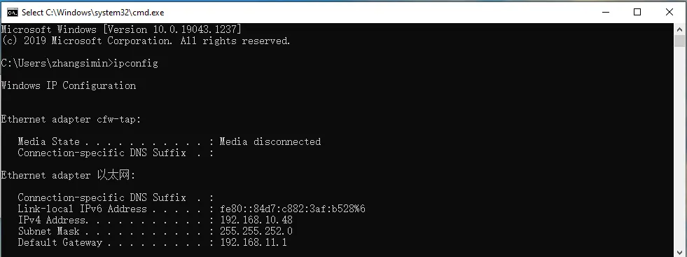 Win + R, typeCMD, and open the command prompt to obtain the computer's IP address.