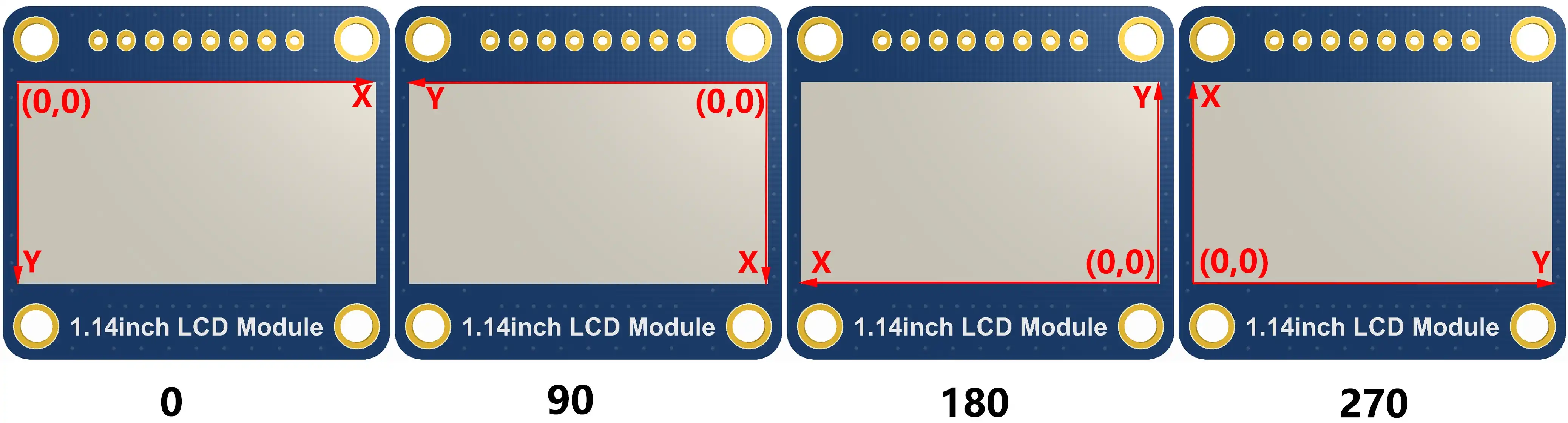 Image Rotation: Set the rotation angle for the selected image. It is best to use this after Paint_SelectImage(). You can choose to rotate by 0, 90, 180, or 270 degrees.
