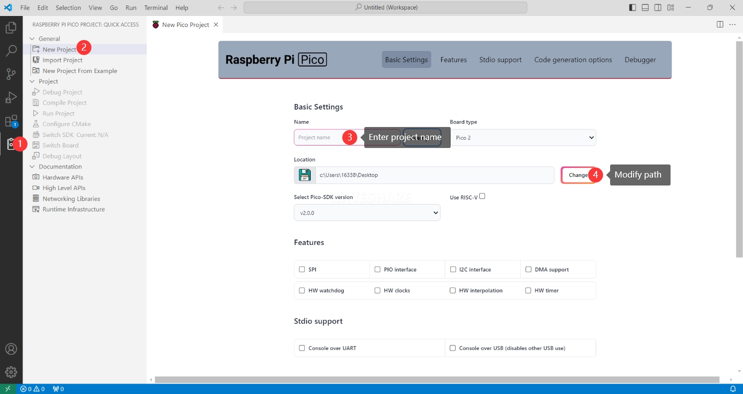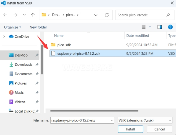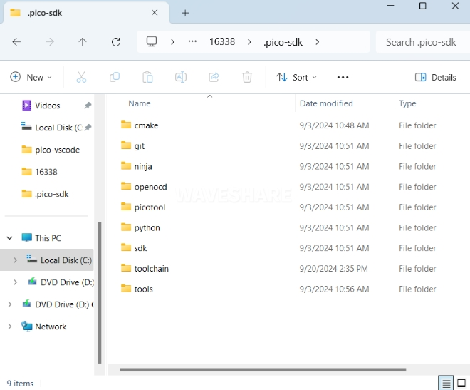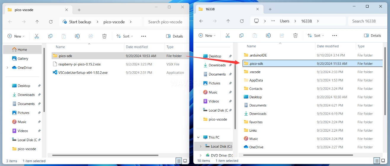 C:\Users\YourUsername, and copy the entire.pico-sdkfolder to this directory.