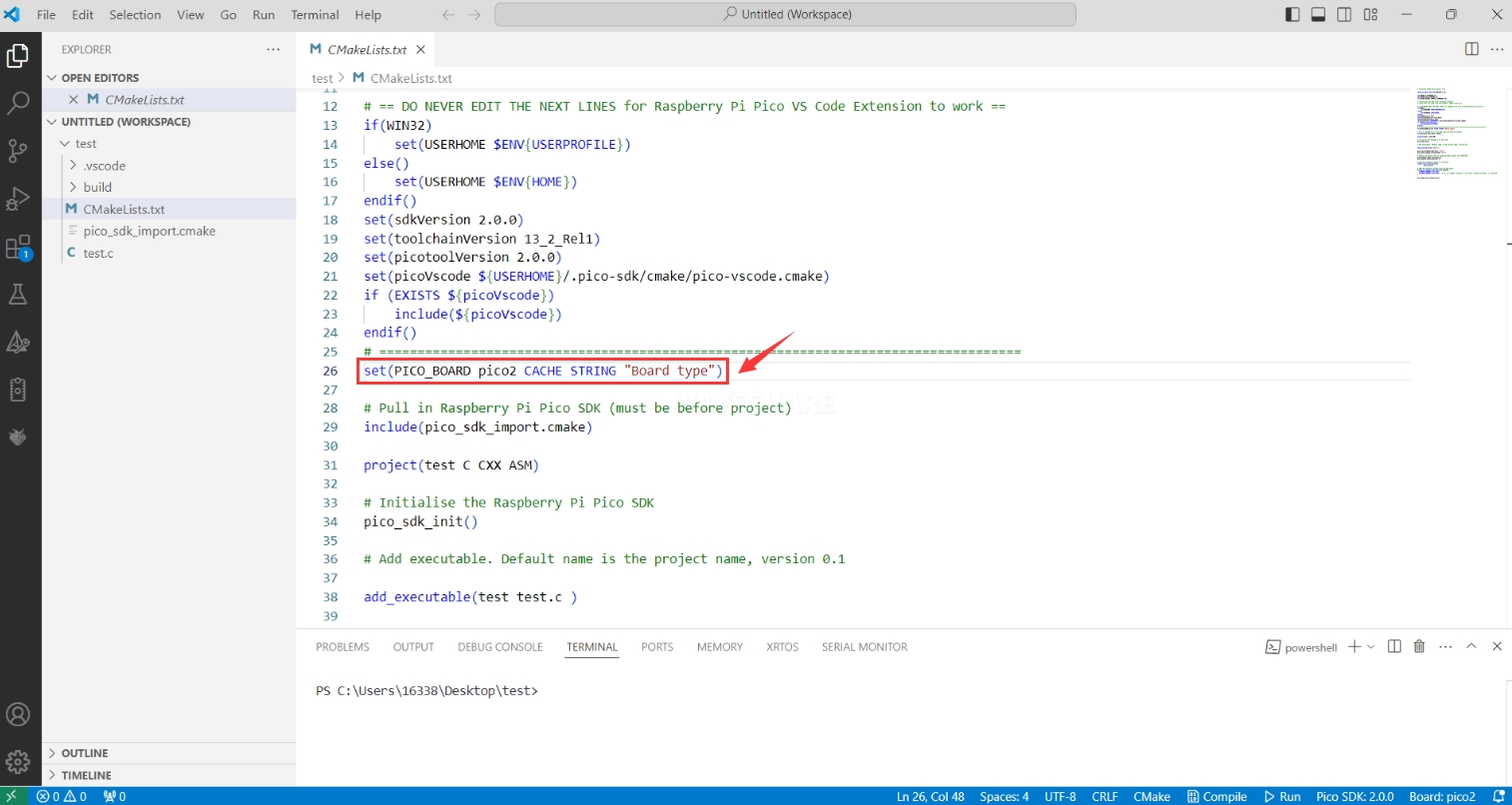CMakeLists.txt, even if Pico 2 is selected in VS Code, the compiled firmware will still be for the original Pico.
